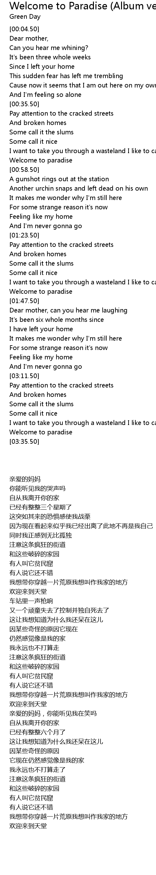 | [00:46.50] | I want to take you through a wasteland I like to call my home |