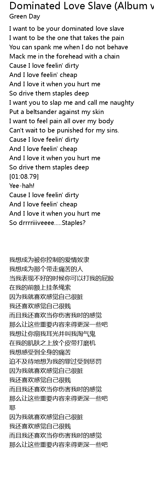 | [00:08.12] | I want to be your dominated love slave |