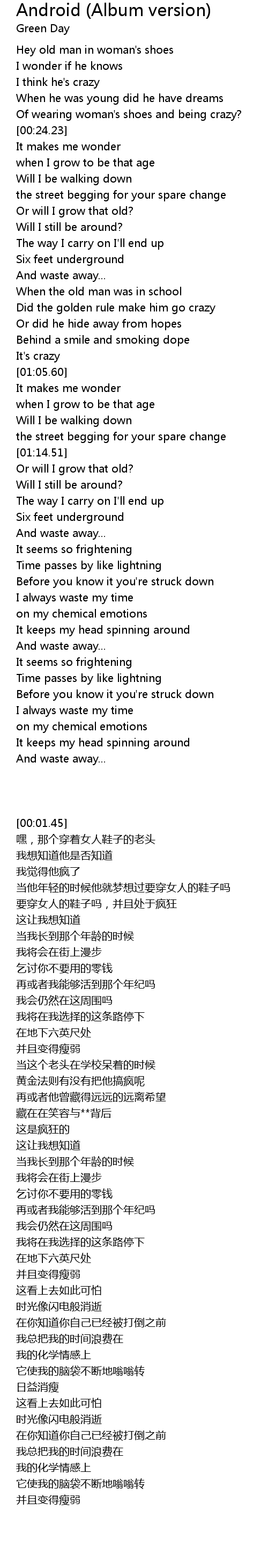 | [00:19.83] | Of wearing woman's shoes and being crazy? |