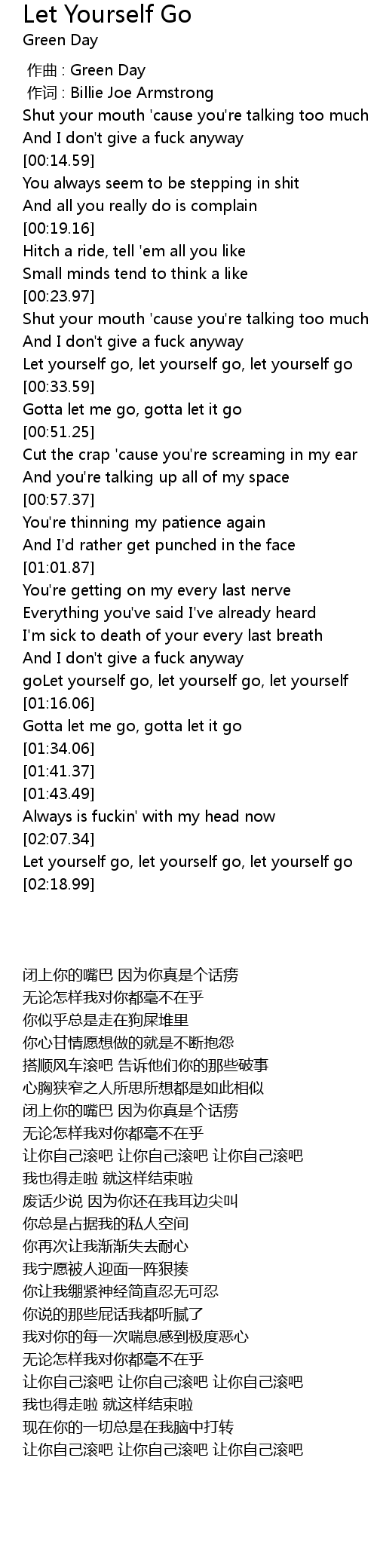 | [00:01.00] | 作词 : Billie Joe Armstrong |