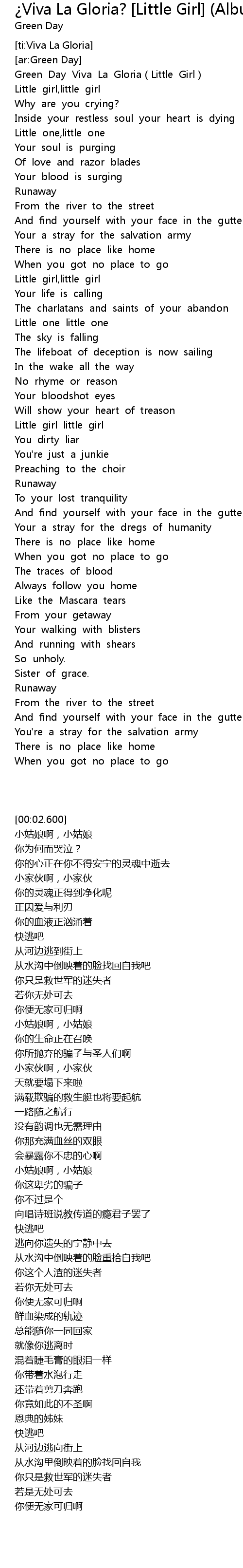 | [00:02.600] | Green Day Viva La Gloria Little Girl |