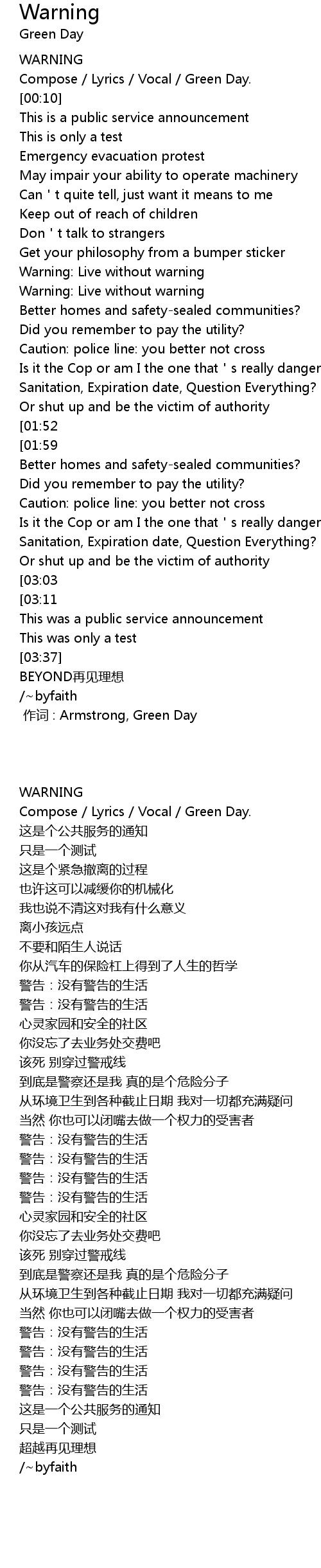 | [00:00.00] | zuò cí : Armstrong, Green Day |