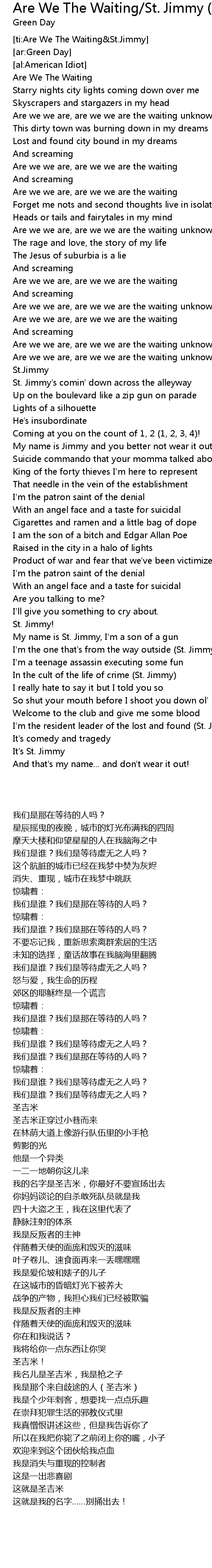 Are We The Waiting/St. Jimmy (Album Version) Lyrics