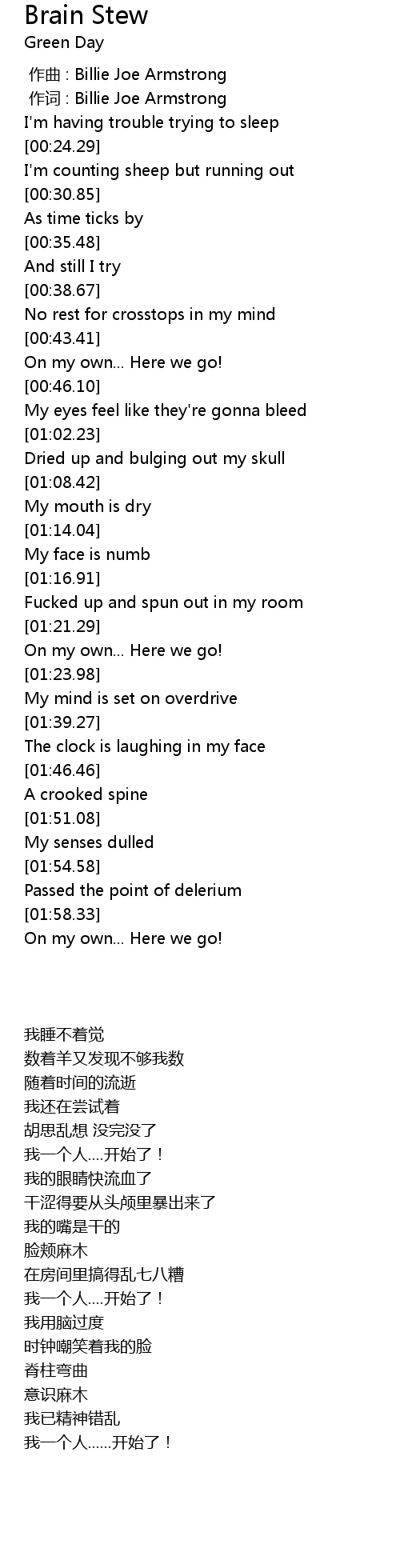 | [00:01.00] | 作词 : Billie Joe Armstrong |