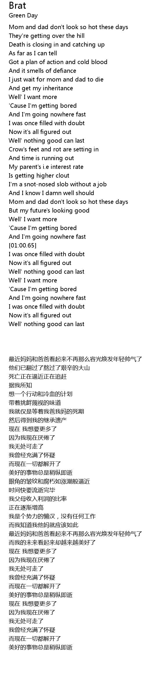 | [00:50.53] | Mom and dad don't look so hot these days |