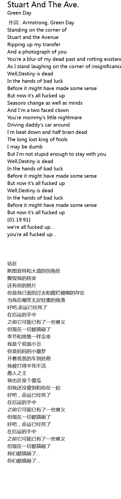| [00:00.00] | 作词 : Armstrong, Green Day |