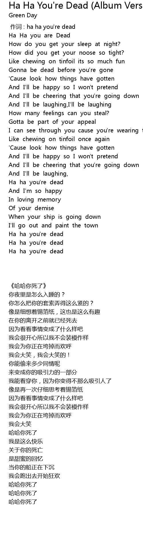 | [00:00.00] | zuò cí : ha ha you' re dead |