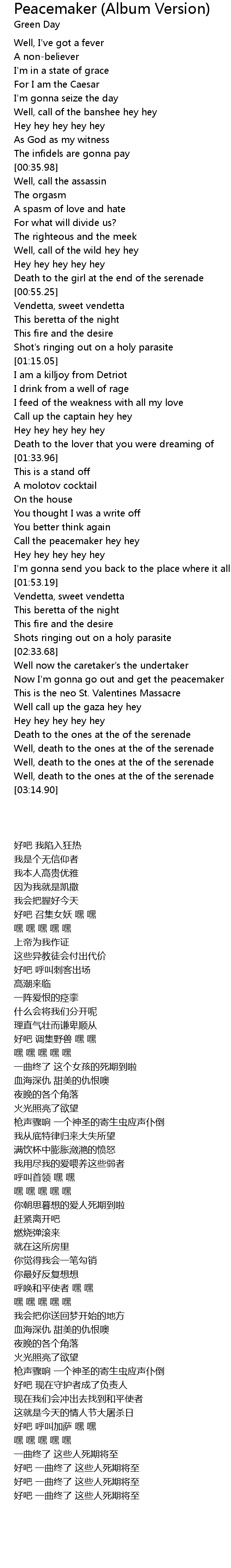 Call the peacemaker hey hey |