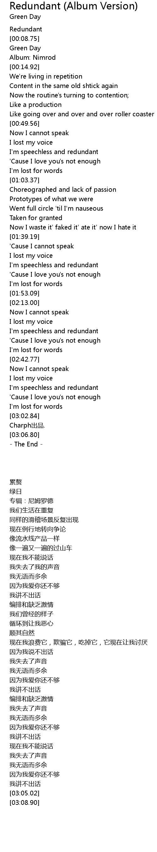 | [01:24.24] | Went full circle ' til I' m nauseous |