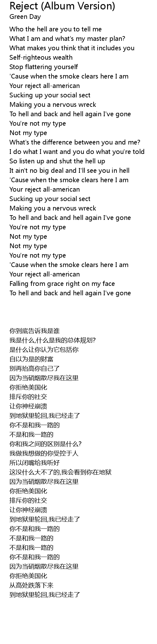 | [00:26] | Your reject all-american |
