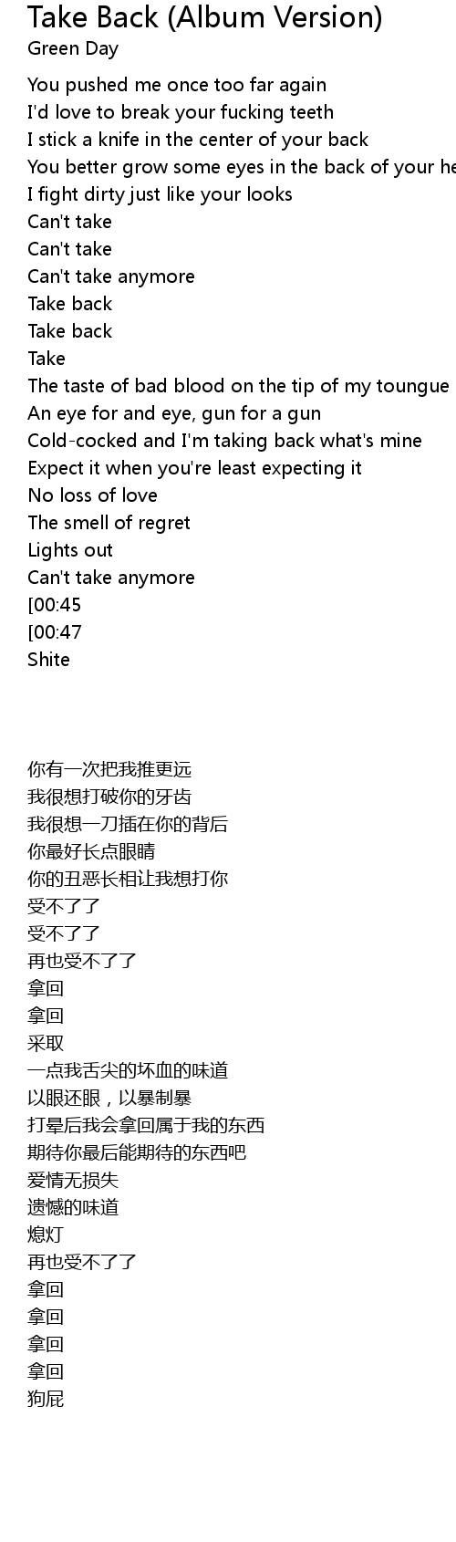 | [00:28] | The taste of bad blood on the tip of my toungue |