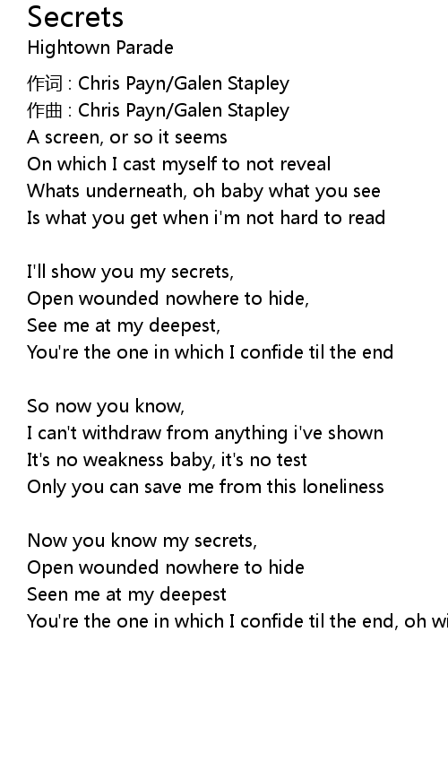| Now you know my secrets, | |