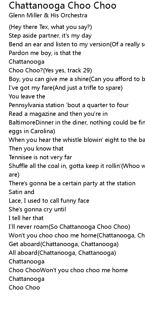 Won't you choo choo me home(Chattanooga, Chattanooga) |