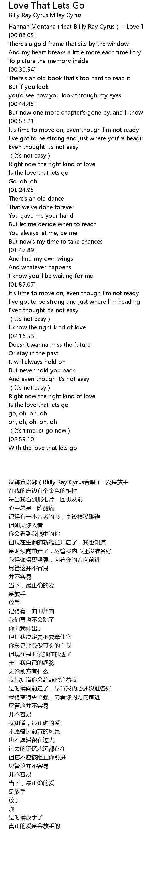 | [00:-1.50] | Hannah Montana feat Blilly Ray Cyrus Love That Lets Go |