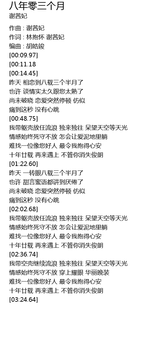 | [00:20.45] | 昨天 相恋到八载三个半月了 |