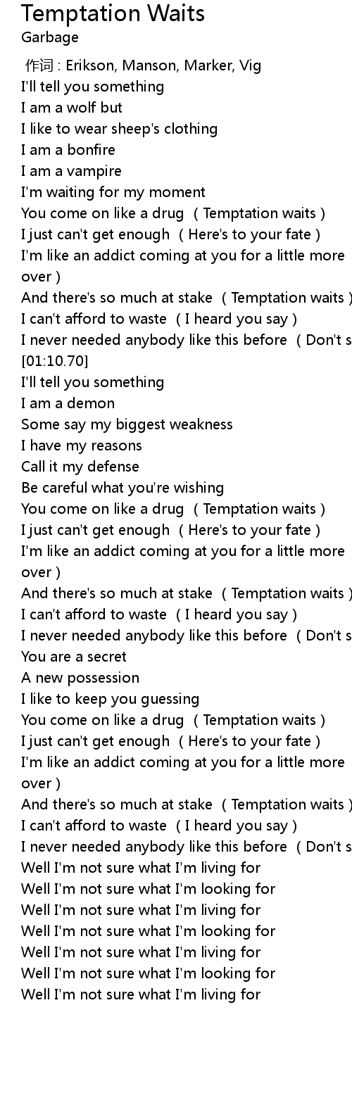 | [00:43.08] | You come on like a drug (Temptation waits) |