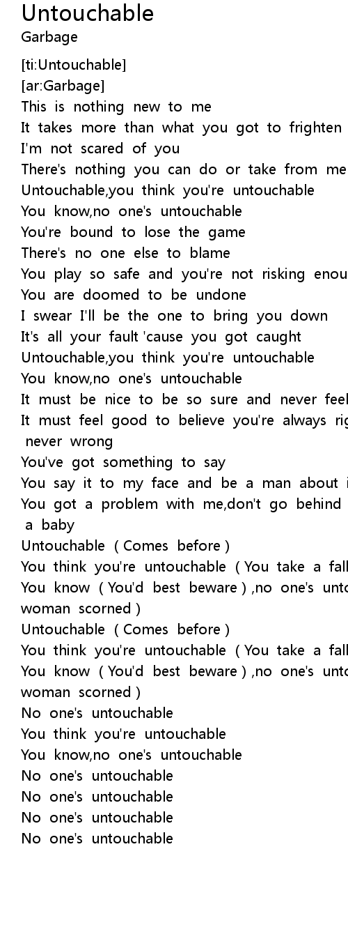 | [00:41.246] | Untouchable, you think you' re untouchable |