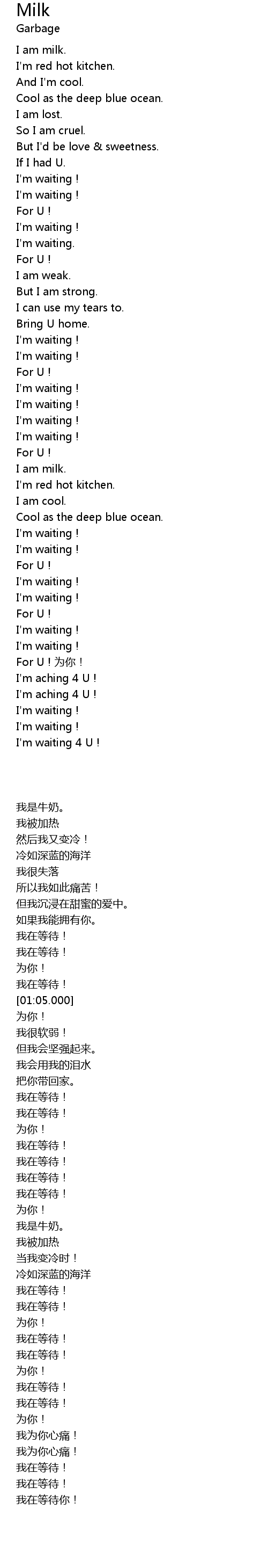 | [02:00.000] | I' m waiting ! |
