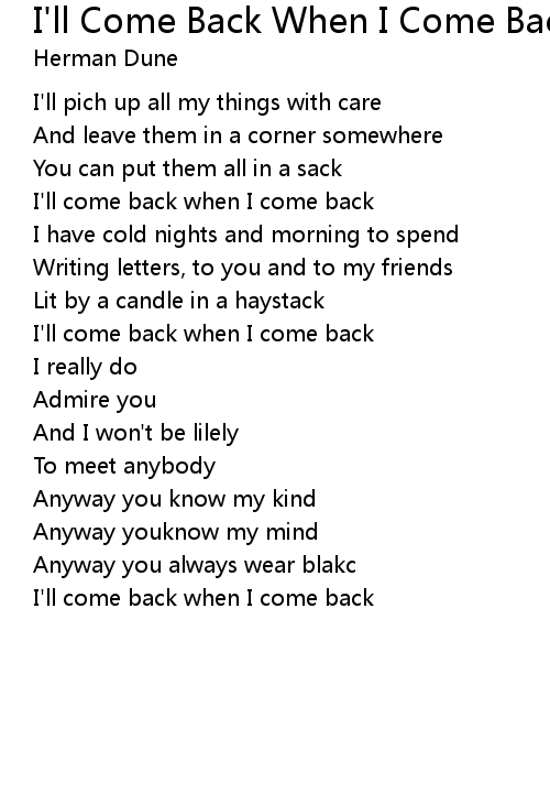 | I'll come back when I come back |
