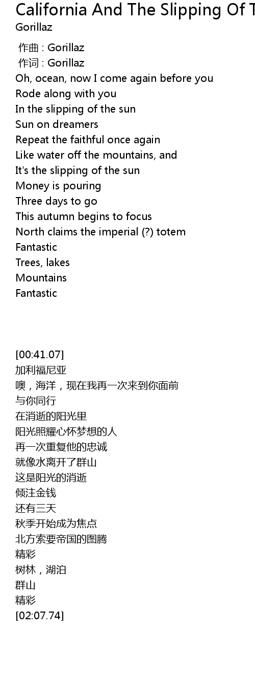 | [00:00.00] | zuò qǔ : Gorillaz |