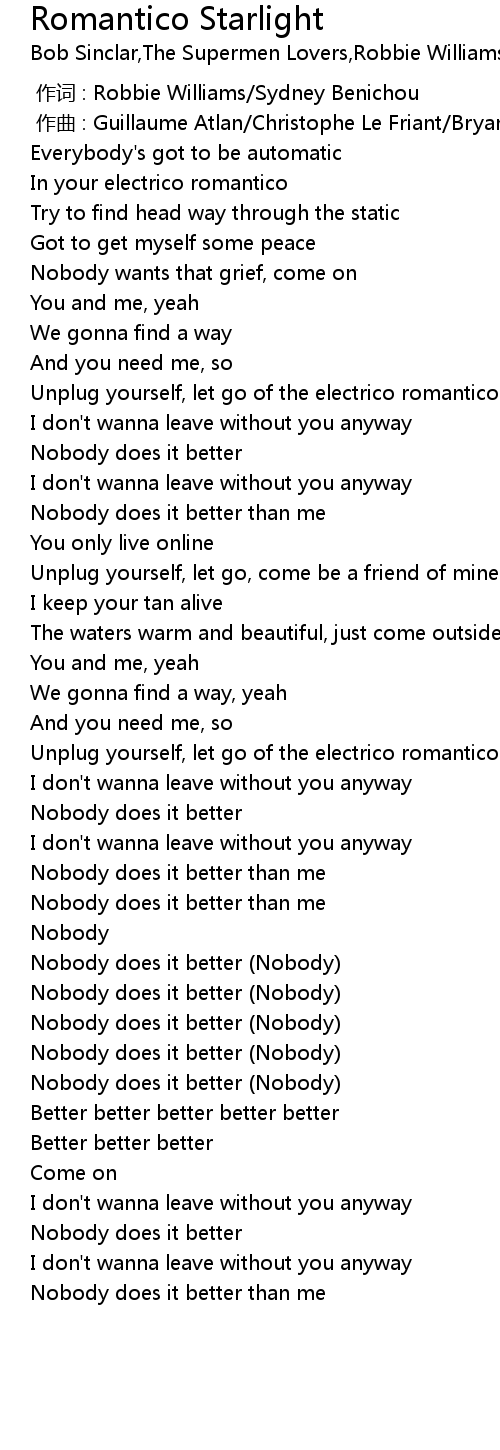 | [00:00.000] | 作词 : Robbie Williams/Sydney Benichou |