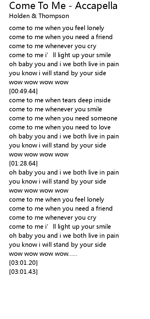 | Song | Come To Me - Accapella |