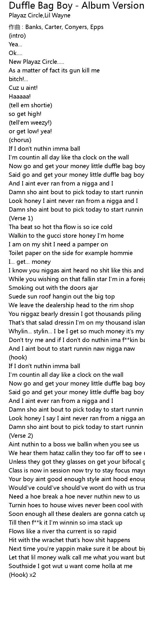 | Song | Duffle Bag Boy - Album Version (Explicit) |