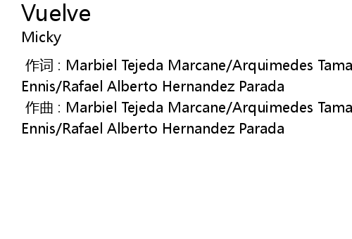 | [00:00.000] | 作词 : Marbiel Tejeda Marcane/Arquimedes Tamayo Larrea Ennis/Rafael Alberto Hernandez Parada |