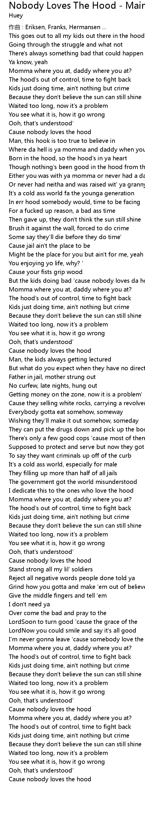 | Song | Nobody Loves The Hood - Main Version - Explicit |