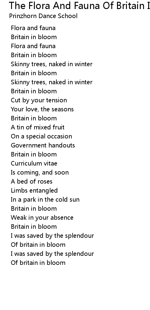 The Flora And Fauna Of Britain In Bloom Lyrics
