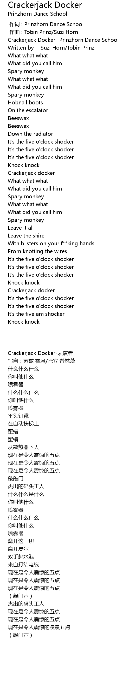 | [00:00.141] | Crackerjack Docker -Prinzhorn Dance School |