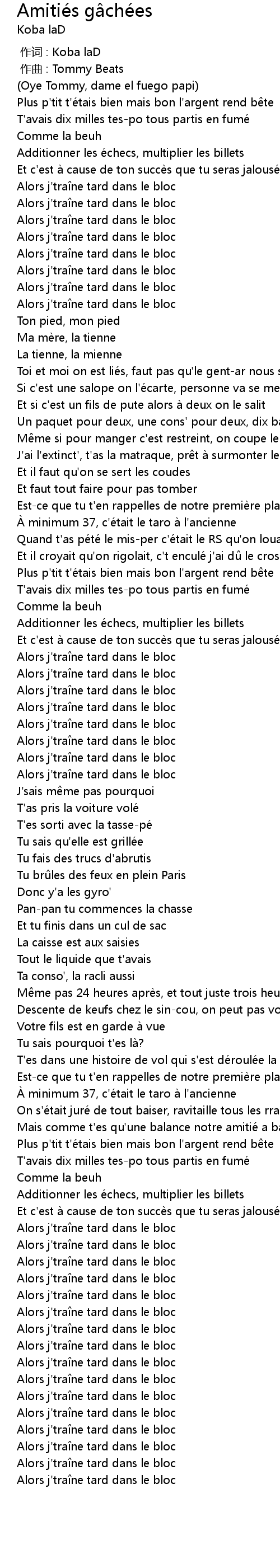 | [00:45.57] | Si c' est une salope on l'é carte, personne va se mettre entre nous |