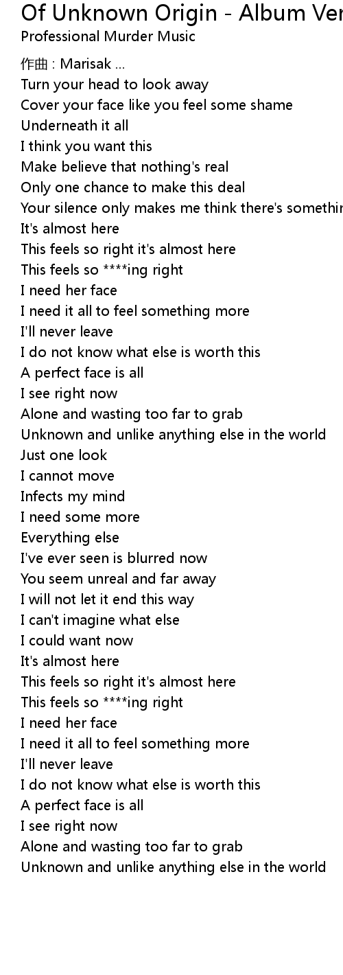 | Song | Of Unknown Origin - Album Version (Explicit) |