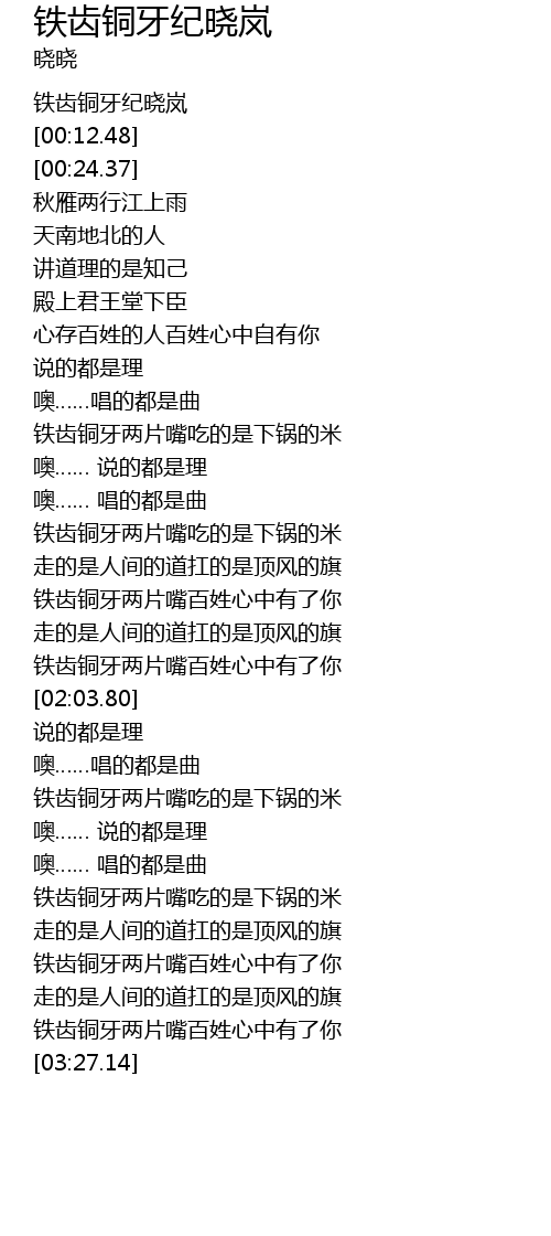 | [03:12.11] | 铁齿铜牙两片嘴百姓心中有了你 |