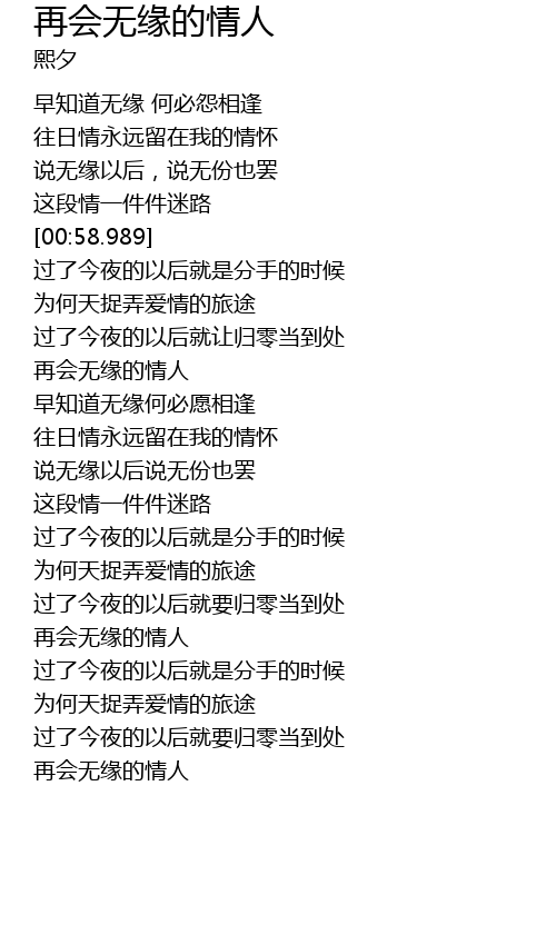 | [01:58.857] | 说无缘以后说无份也罢 |