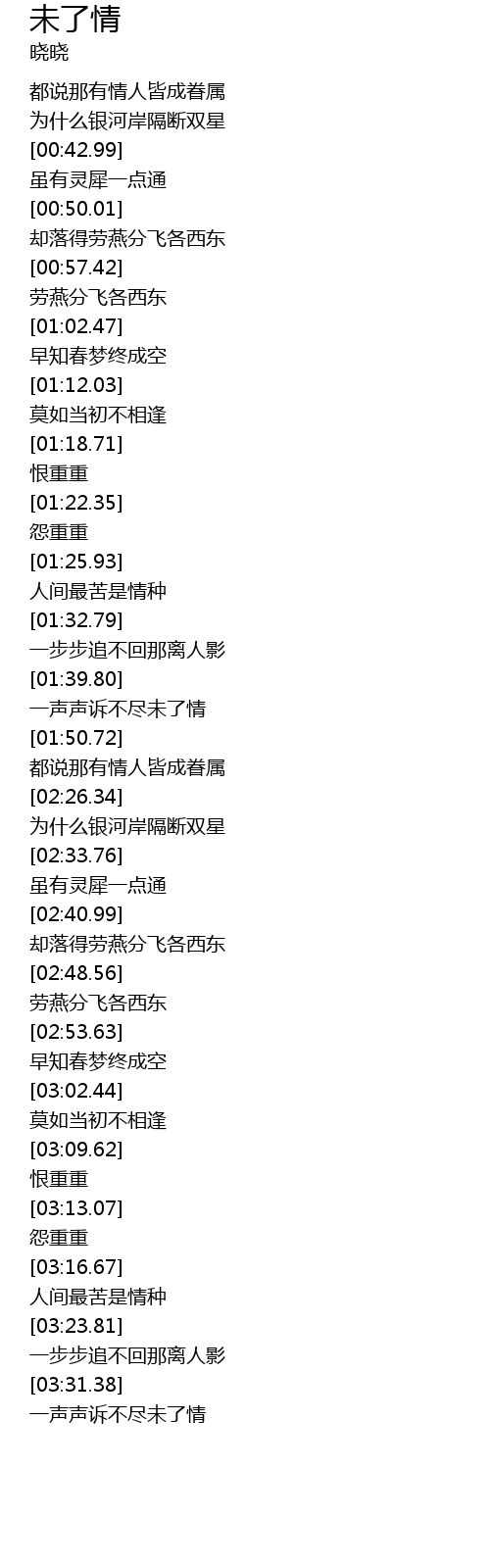 | [01:41.90] | 一声声诉不尽未了情 |