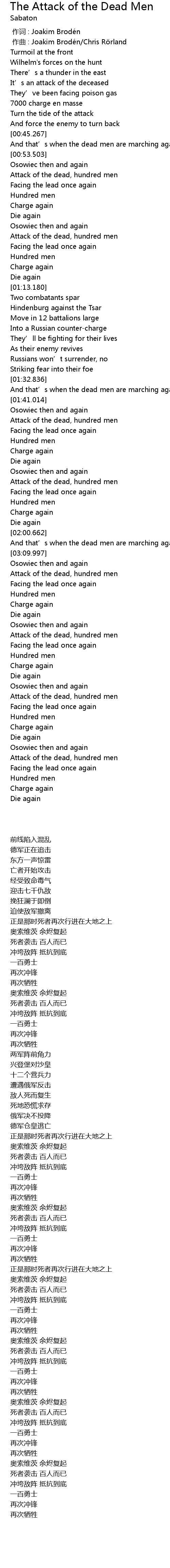 | [03:01.584] | And that' s when the dead men are marching again |
