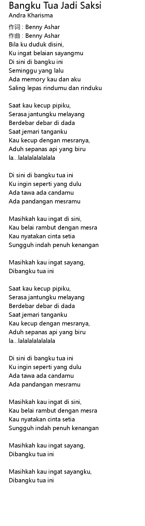 | Song | Bangku Tua Jadi Saksi |