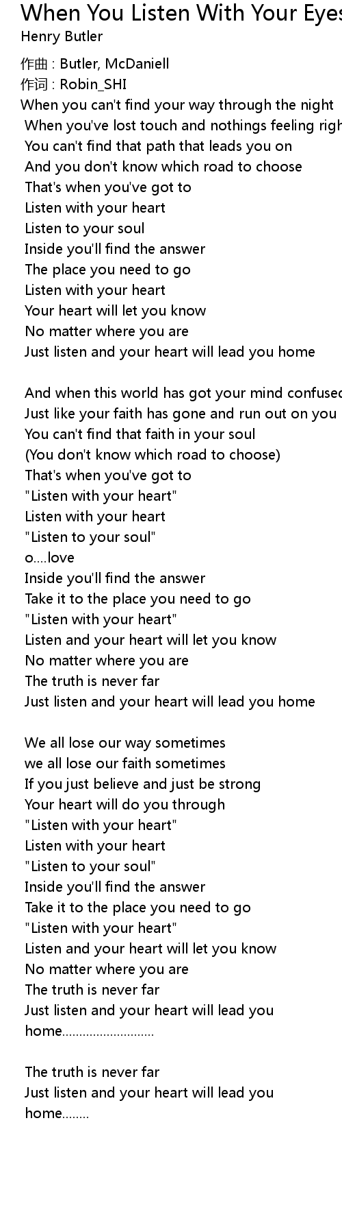 | Listen and your heart will let you know | |