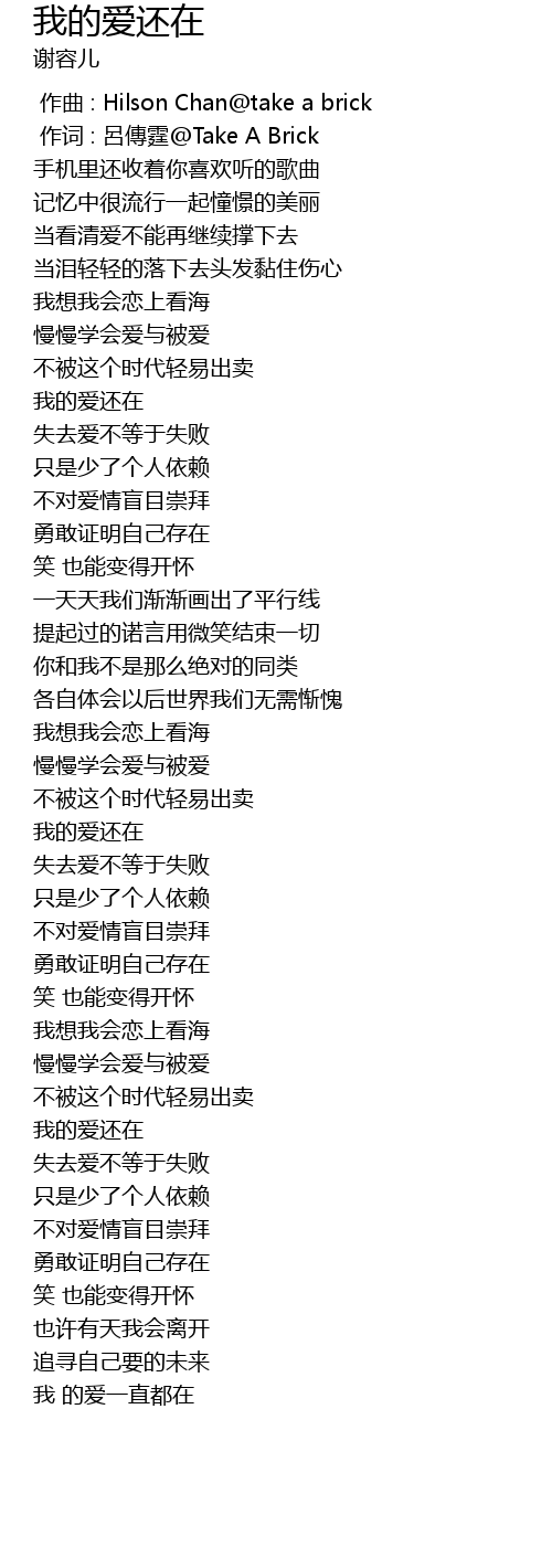 | [00:00.00] | zuò qǔ : Hilson Chan take a brick |
