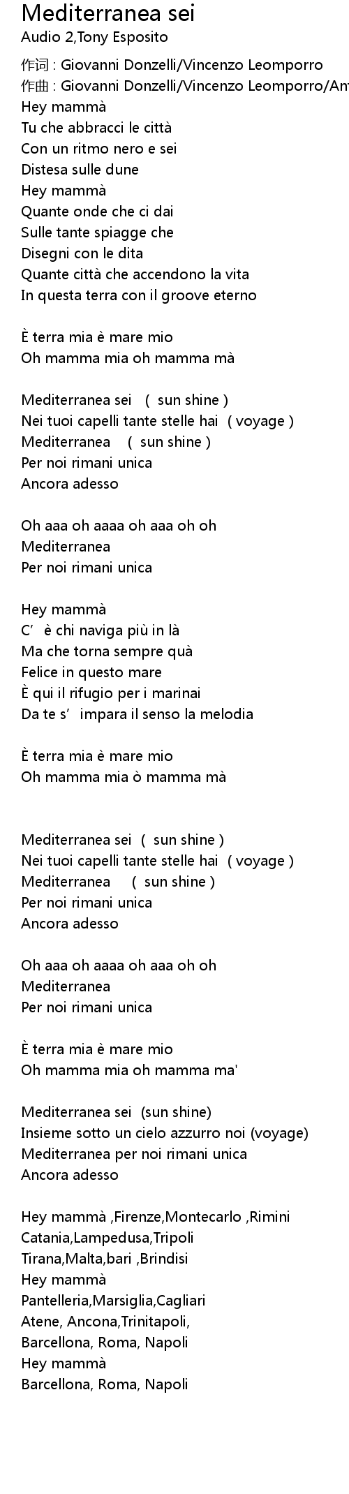 | 作词 : Giovanni Donzelli/Vincenzo Leomporro | |