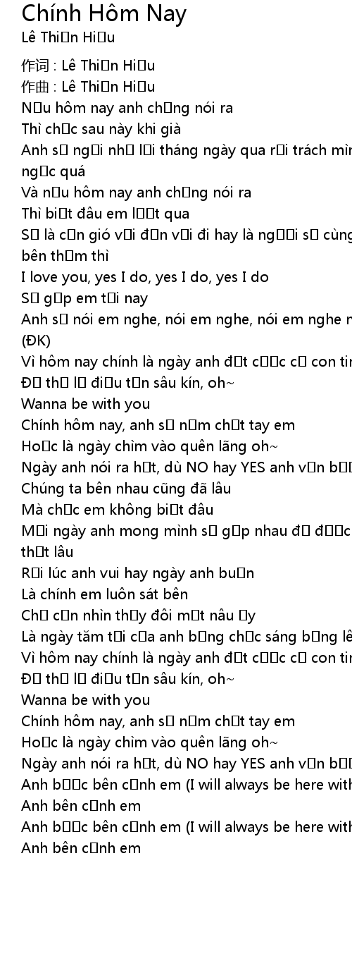 | Vì h m nay chí nh là ngà y anh t c c c con tim | |
