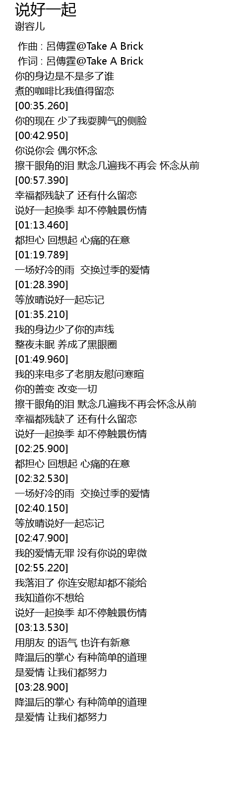 | [03:05.850] | 说好一起换季 却不停触景伤情 |