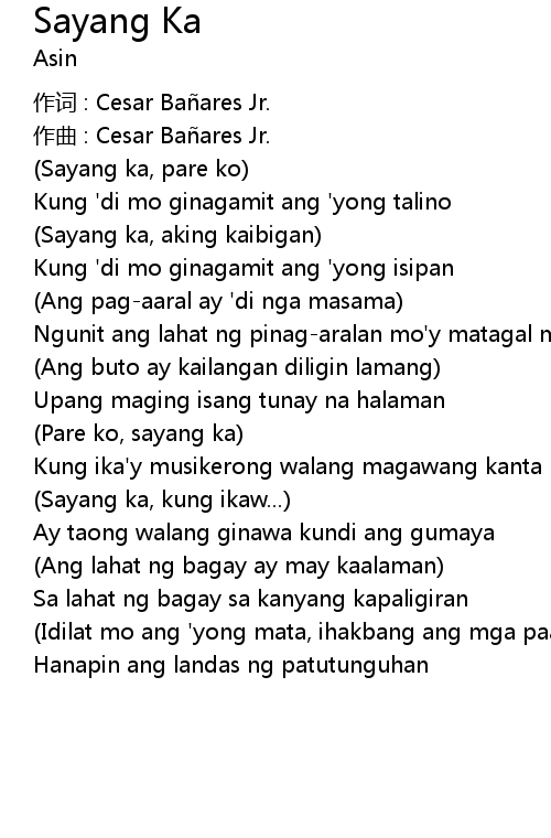 | 作词 : Cesar Bañares Jr. | |