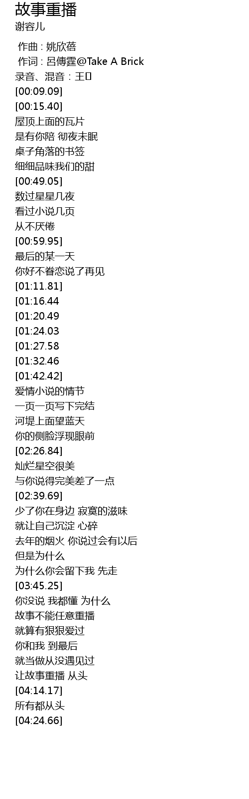 | [02:59.23][01:20.49] | 故事重播那样轻松 |