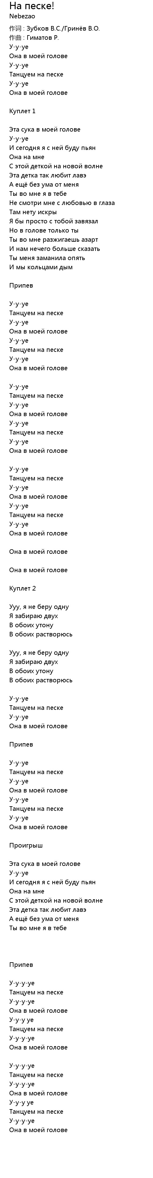 作词 : Зубков В.С./Гринёв В.О. |