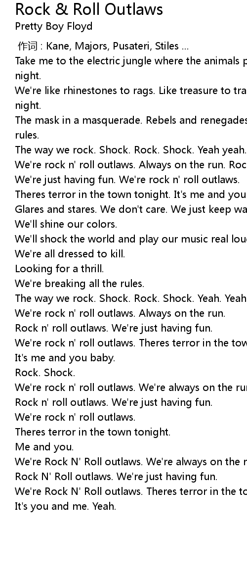 | [00:40.38] | We're rock n' roll outlaws. Always on the run. Rock n' roll outlaws. |