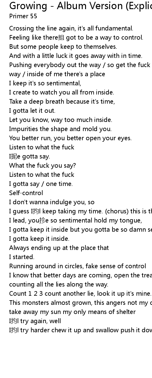 | This monsters almost grown, this angers not my own repeat chorus b verse so take away my sun my only means of shelter | |