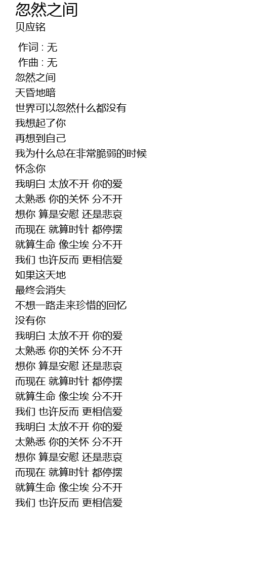| [00:23.672] | 世界可以忽然什么都没有 |