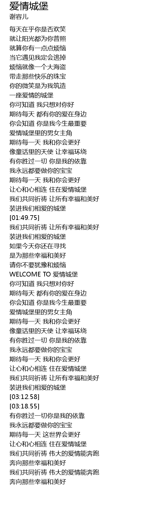 | [02:20.51] | WELCOME TO 爱情城堡 |